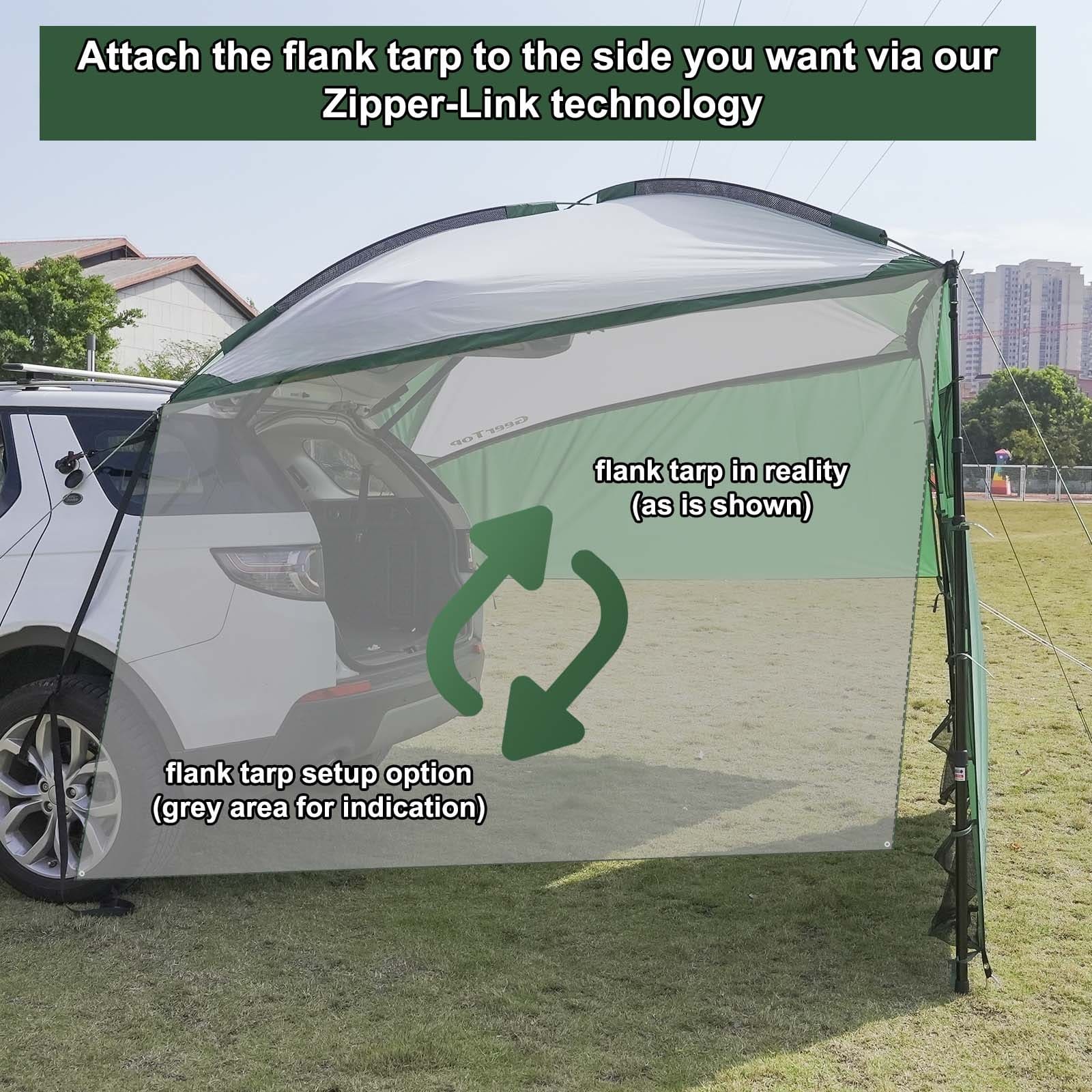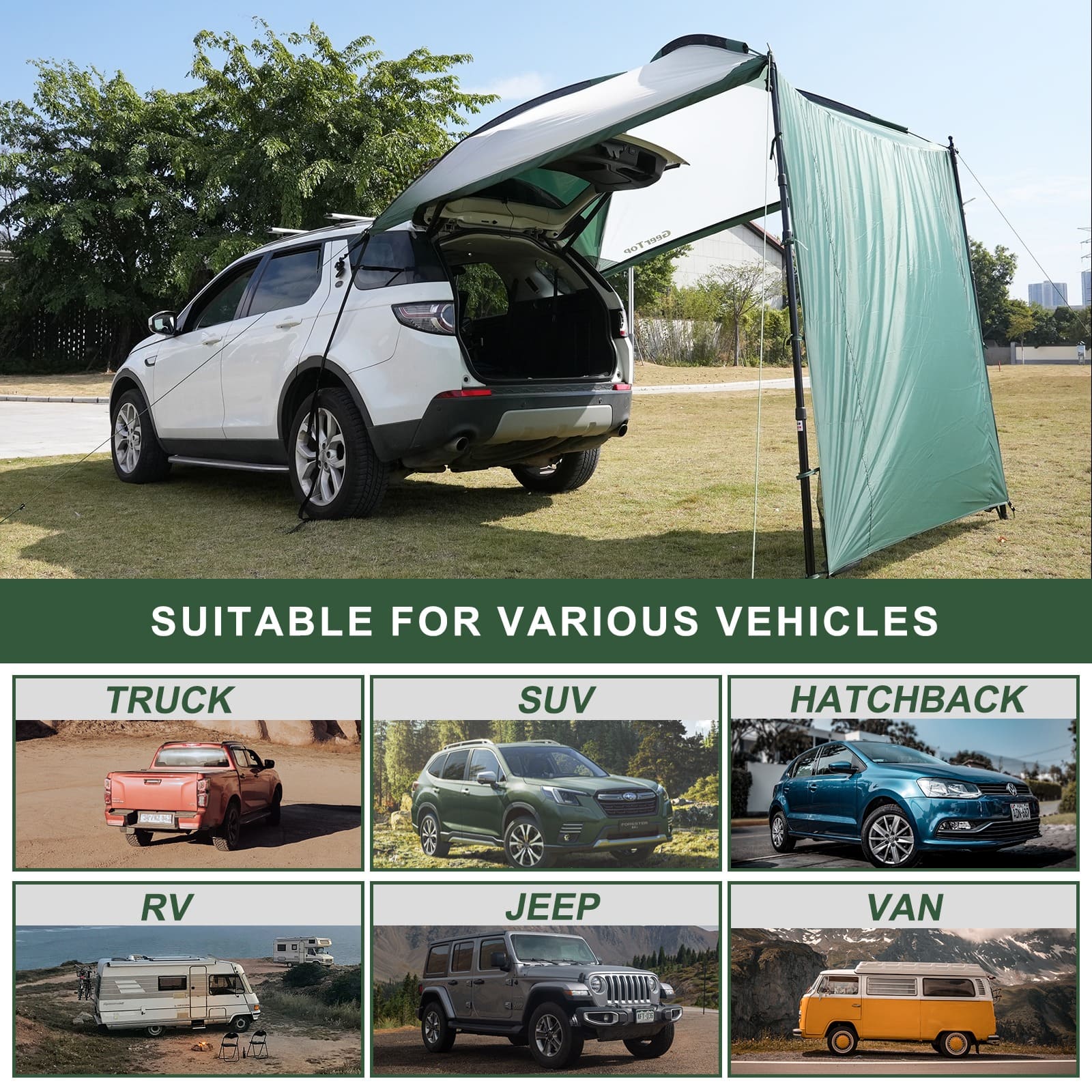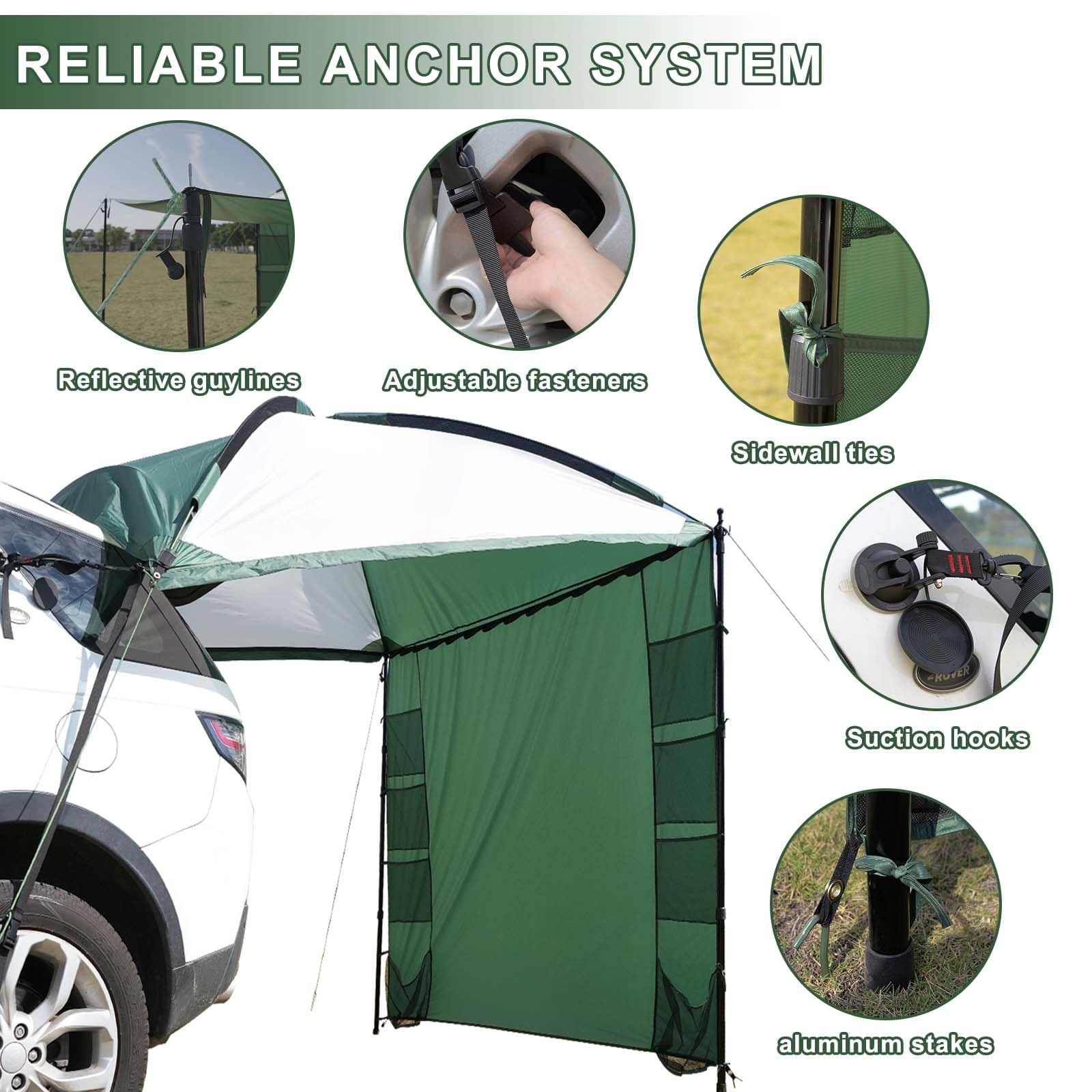 Universal Suction Cup Fit: Equipped with heavy-duty vacuum suction cups, this awning attaches securely to Teslas, MPVs, SUVs, and Trucks without requiring a roof rack or permanent installation.