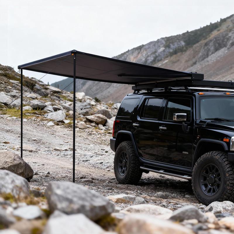 Total Sunblock: Featuring a specialized Blackout Vinyl Coating, it blocks 100% of sunlight and UV rays, keeping the shaded area significantly cooler than standard awnings.